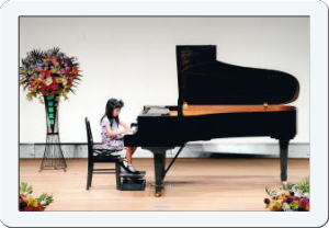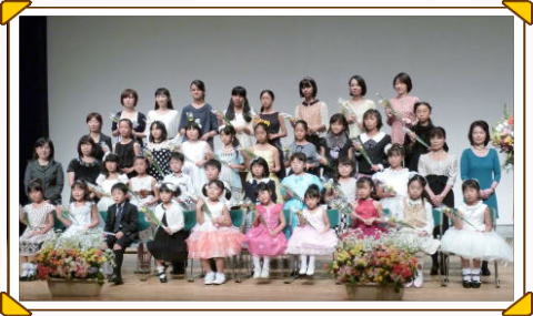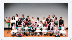 | 1年〜1年半に一度、発表会を行います。 発表会ではソロ曲に加え、親子・ご兄弟・お友達などを交えたアンサンブルにも出演して いただけます。 一生懸命に頑張って仕上げた愛着のある曲を披露する経験、そしてその達成感は きっとその先も人生の宝物として心にいつまでも残るものではないでしょうか。 |